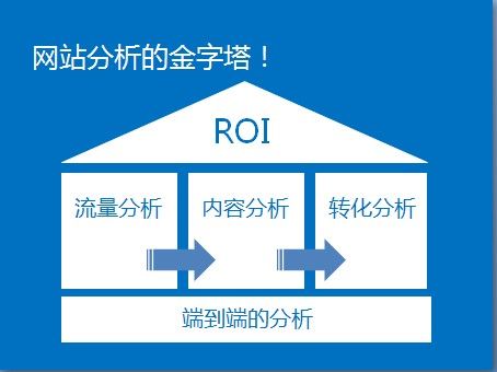 網站分析的整個過程是一個金字塔的結構。金字塔的頂部是網站的目標:投資回報率(ROI)。要達到這個目標,我們首先需要有訪問者,所以第一部分是網站的流量分析。其次,我們要針對訪問者的需求,有效的展示我們的內容,商品和信息。并且讓客戶喜歡這些內容。因此,第二部分我們要對網站的內容進行分析。內容分析涵蓋的范圍比較廣,包括導航分析,頁面質量分析等等。最后,也是最關鍵的部分,我們要讓訪問者轉化為客戶,購買我們的信息和商品。只有訪問者完成了最后的轉化,我們才能完成網站的最終目標。因此我們要對網站的轉化進行分析。最后,每一個問題都不是單一的原因引起的,每一個分析也都不是孤立存在的,因此我們還需要串聯整個訪問和購買過程。對網站進行端到端的分析。下面,我們來逐一說明每一部分的分析方法和我們要分析的內容。