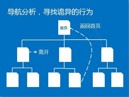 介紹完了流量分析,我們來看下如何分析網站內容。網站內容分析分為兩部分,第一部分是網站的導航分析。對于所有的網站來說,頁面都可以被劃分為三個類別。導航頁,功能頁和內容頁。首頁和列表頁都是典型的導航類頁面。站內搜索頁面,注冊表單頁面和購物車頁面都是典型的功能頁面。而產品詳情頁,新聞和文章頁都是典型的內容頁。導航頁的目的是引導訪問者找到信息,功能頁的目的是完成訪問者的特定任務,內容頁的目的是向訪問者展示信息,幫助決策。以上三類頁面共同組成了網站的整體頁面結構。這是一個簡單的網站結構示意圖。最頂上是首頁,第二行是列表頁,第三行是詳情頁。在上面的結構中,我們分析時主要尋找兩類詭異的行為。1訪問者在導航類頁面中途離開。2訪問者從內容類頁面重新返回導航類頁面。這兩類行為都是我們在最初設計時不希望看到的行為。下面我們來逐一說明這兩類行為的問題。